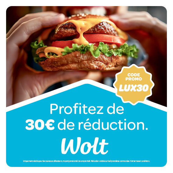 • 2025-11-07 2025-11-30 Europe/Paris A tasty deal! From November 7 to 23, treat yourself without feeling guilty. - €30 off your first orders - 14 days of free delivery with the code LUX30 Simply download the Wolt app and create your account (offer valid for new users only). Take advantage of this opportunity to discover your favorite restaurants without leaving your couch! Luxembourg Wolt