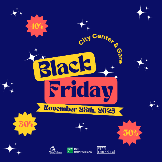 On Friday, November 28, Luxembourg comes alive for Black Friday! With discounts and discoveries galore, it's the perfect time to stroll through the shops, find your holiday gifts, or simply treat yourself.
