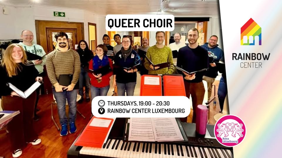 Are you a passionate singer or musician who wants to be part of the relaunch of the Queer Choir in Luxembourg? If you dream of being on stage or sharing your passion, join our rehearsals every Thursday evening at the Rainbow Center Luxembourg (some dates might be unavailable).