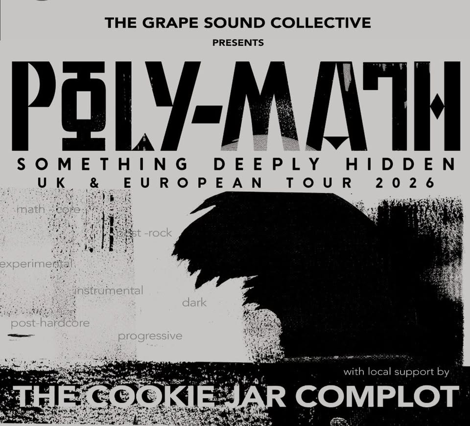 • 2026-04-24 18:00:00 2026-04-24 19:00:00 Europe/Paris Poly-Math (UK) + The Cookie Jar Complot (LUX) Poly-Math are one of the UK’s most inventive instrumental bands, coming from Brighton’s underground. Their music moves between math-rock precision, post-rock atmosphere, and sonic catharsis. With no vocals, they push the boundaries of instrumental rock, building and deconstructing musical worlds on stage. The Cookie Jar Complot is an instrumental post/math-rock band from Luxembourg, formed by Sven Schmeler and Gilles Glesener. Their music features dynamic rhythms, post-rock soundscapes, and interwoven guitar melodies, aimed at creating danceable instrumental music. 1 avenue du Swing Belvaux, Luxembourg The Grape Sound Collective