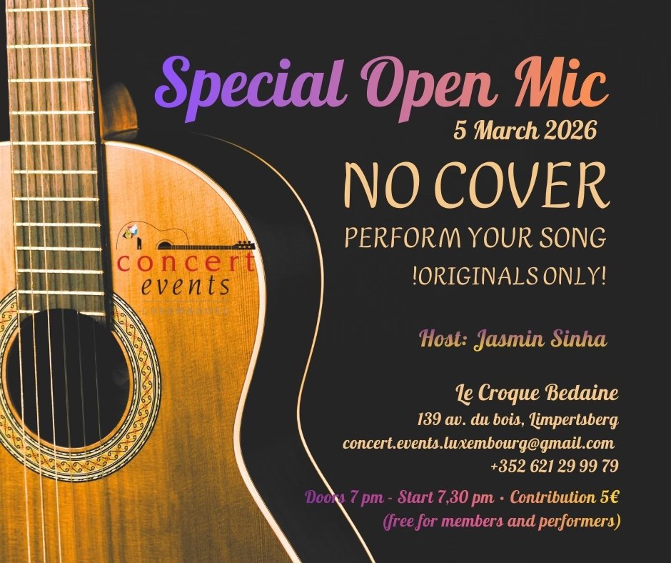Participants are informed that they may appear in photos or videos taken at the event. These may be published in print and/or digital media by Concert Events Luxembourg asbl.