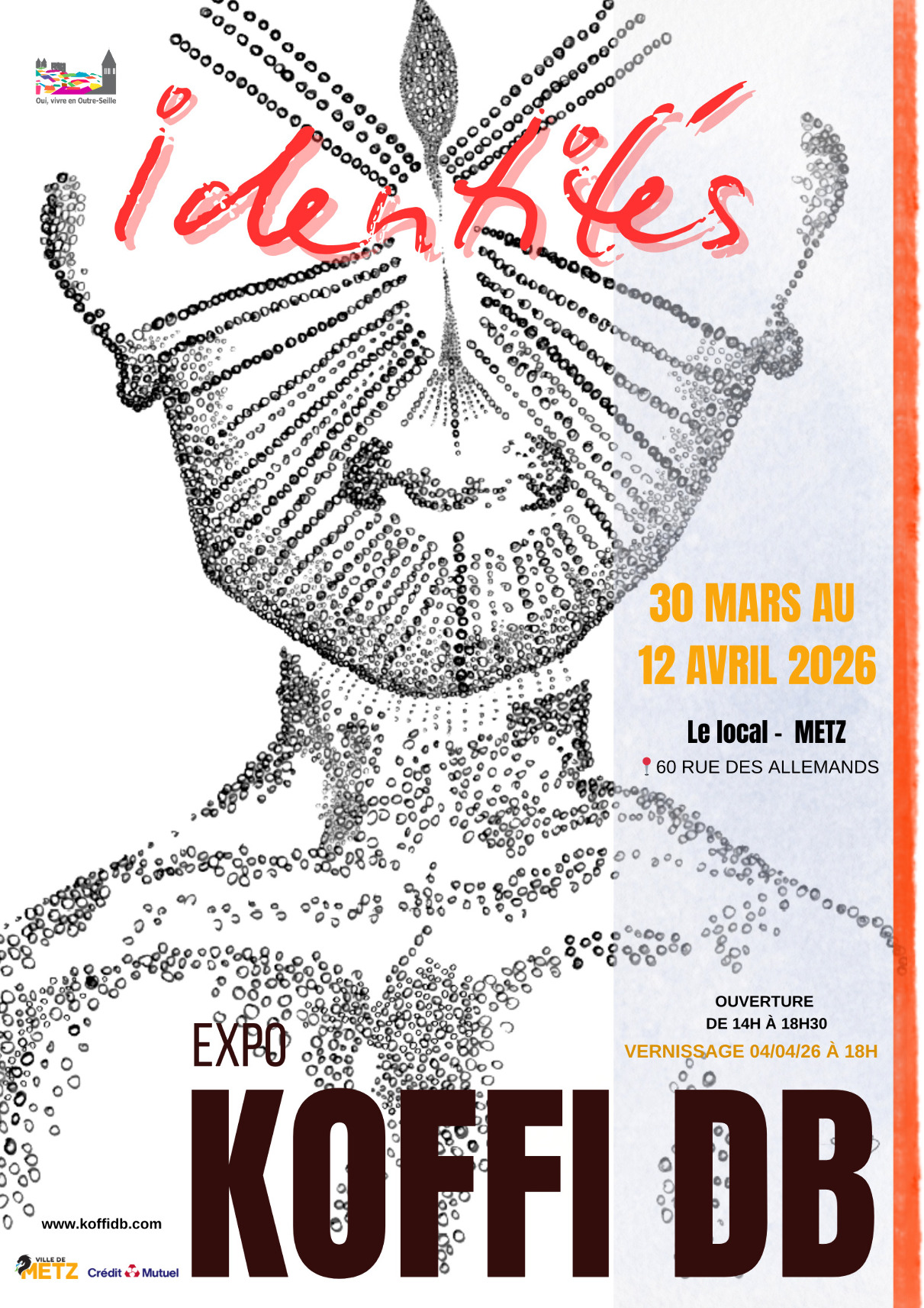 The association "Oui, vivre en Outre-Seille" is hosting an exhibition of works by Koffi DB titled "Identities".