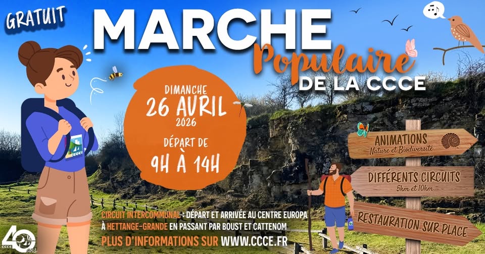Starts from 09:00 to 14:00 at Centre Europa in Hettange-Grande. Animations, stands, and refreshment points along the route. On-site catering available. Free access.