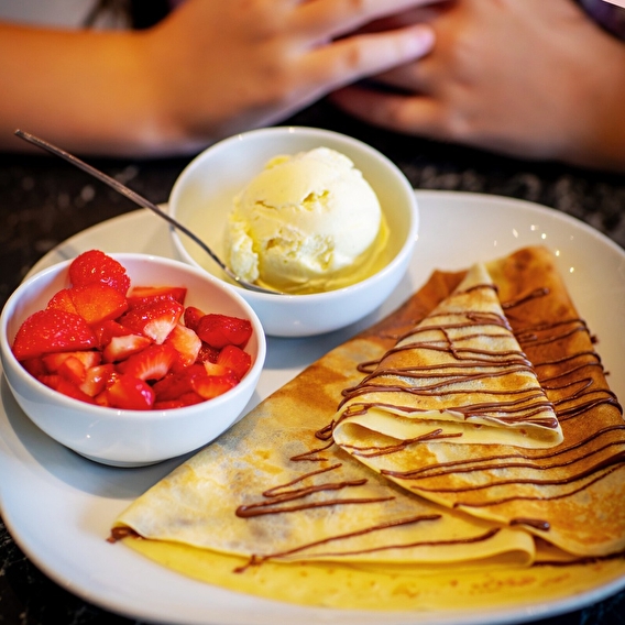 On the menu: gourmet Kinder Bueno crepe, gourmet red fruit crepe, gourmet chocolate crepe... or even gourmet caramel crepe!