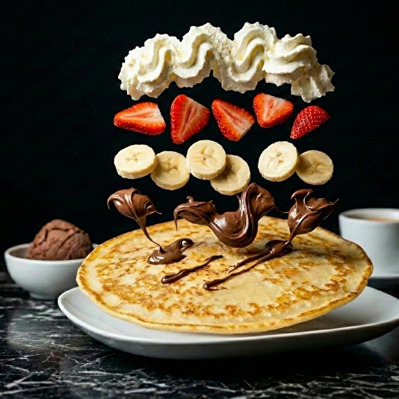 At Crêpes & Co in Messancy, you can create your own crepe: a sweet crepe with Nutella, whipped cream, strawberries, and a scoop of vanilla ice cream, 🍫🍓🍦 or a savory crepe with ham, cheese, mushrooms, and egg. It's up to you to make your crepe! 😍