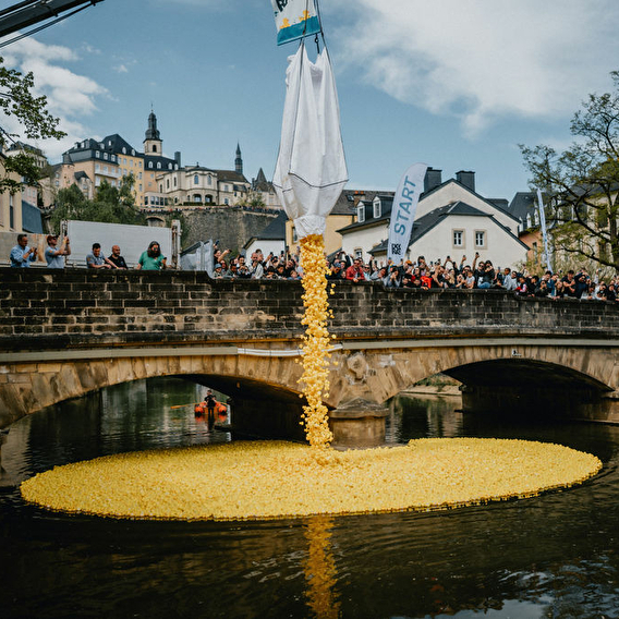 For its 25th edition, the Duck Race returns on April 18, 2026 at neimënster with a truly festive open-air village: children's activities, DJ set, inflatable castle, gourmet stands, and good cheer on the program.