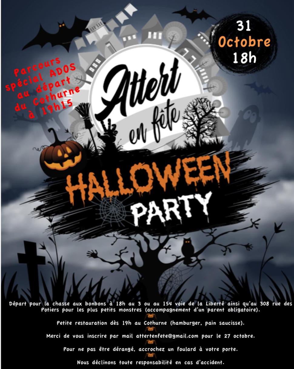 Parcours enfants : départ à 18h au 3 ou 154 voie de la Liberté, ainsi qu'au 308 rue des Potiers (accompagnement d'un parent obligatoire). Parcours spécial ados : départ à 19h15 de la salle Le Cothurne à Attert. Dès 19h : petite restauration (hamburger, pain, saucisse). Inscription requise avant le 27 octobre.