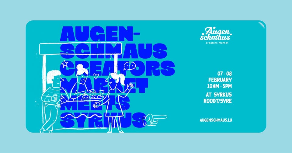 Découvrez la scène créative dynamique du Luxembourg lors d'Augenschmaus. Rejoignez-nous à Syrkus à Roodt/Syre pour un week-end dédié aux impressions, objets design, bijoux, mode et créations visuelles de créateurs sélectionnés.