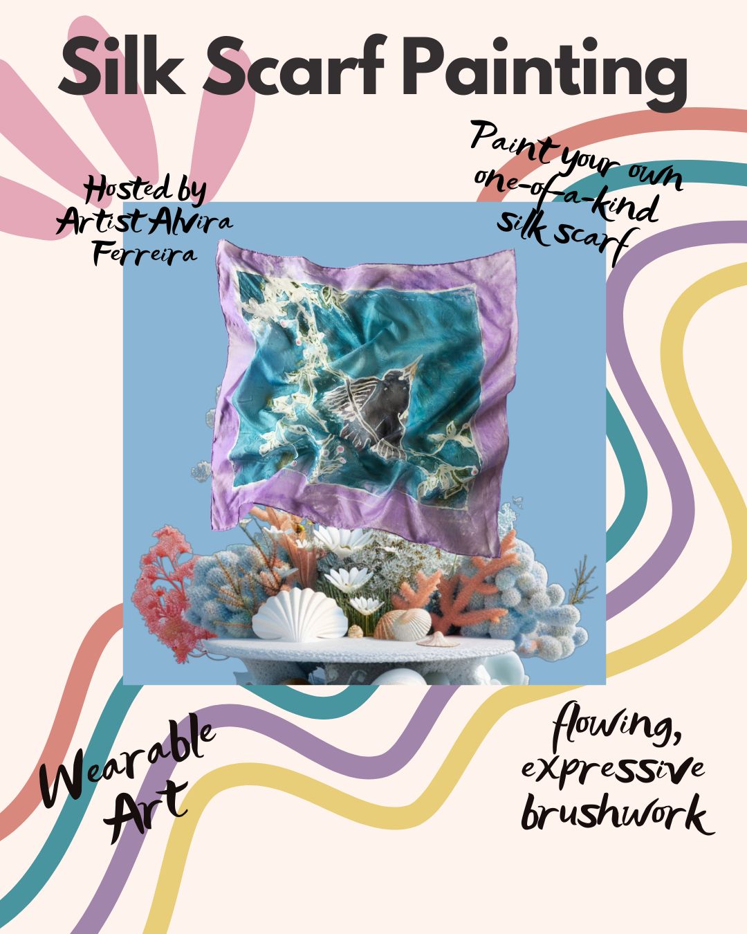Créez votre propre foulard en soie peint à la main lors de cet atelier immersif animé par l'artiste Alvira Ferreira. Idéal pour quiconque souhaite explorer l'art de l'expression à travers ses vêtements, cet atelier vous guidera dans la transformation d'une luxueuse soie en une pièce unique.
