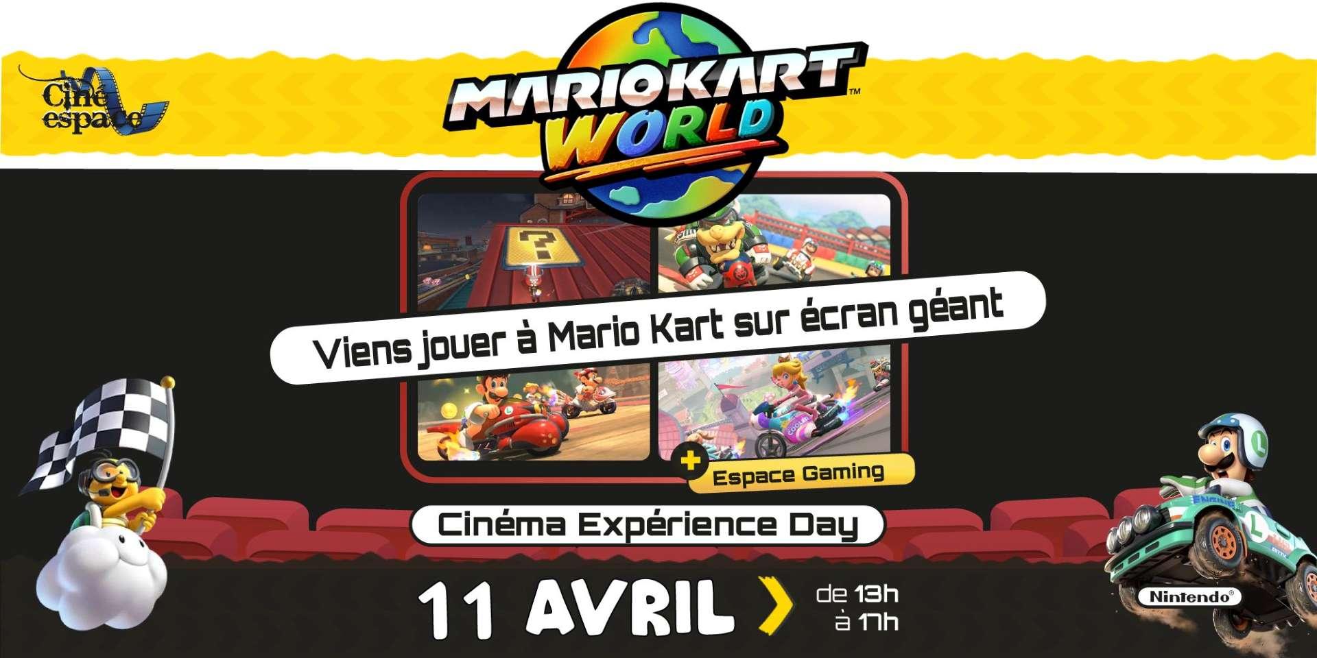 À l’occasion de la sortie du film "Super Mario Galaxy", le Ciné Espace transforme sa salle en arène gaming géante. Le temps d’un après-midi, affronte d’autres joueurs sur Mario Kart World projeté sur l’écran géant du cinéma avec la toute nouvelle Switch 2 et profite de l'espace Gaming.